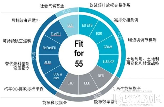 2021年7月14日,歐盟委員會公布了名為“Fit for 55”(“減碳55”)的一攬子氣候計劃,提出了包括能源、工業、交通、建筑等在內的12項更為積極的系列舉措,承諾在2030年底溫室氣體排放量較1990年減少55%的目標。這也成為歐盟目前最新、最關鍵的低碳發展政策。
