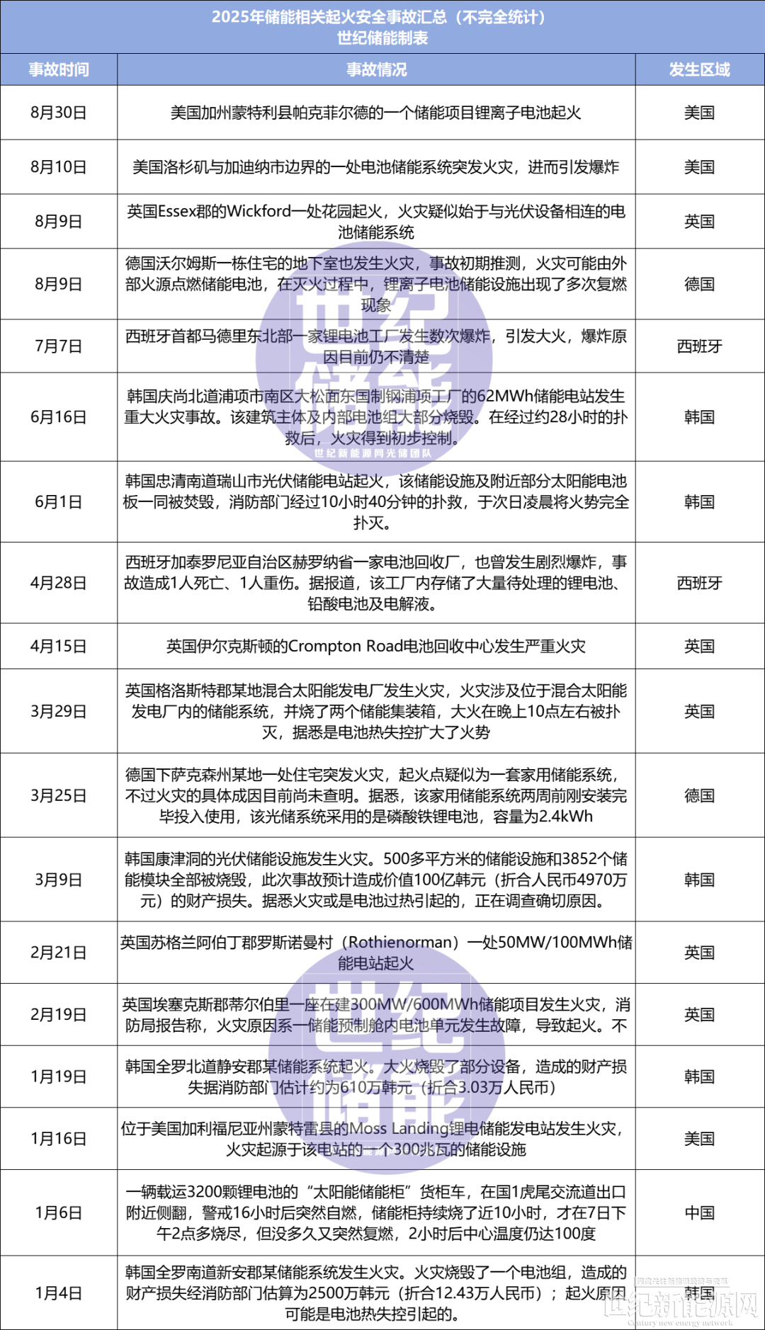 2025年,儲(chǔ)能行業(yè)在快速發(fā)展的同時(shí),也面臨著日益嚴(yán)峻的安全挑戰(zhàn)。全球范圍內(nèi),儲(chǔ)能設(shè)施火災(zāi)事故頻發(fā),不僅造成重大經(jīng)濟(jì)損失,更對(duì)人員安全和環(huán)境構(gòu)成嚴(yán)重威脅。據(jù)不完全統(tǒng)計(jì),2025年全球發(fā)生的儲(chǔ)能相關(guān)火災(zāi)事故已接近20起。