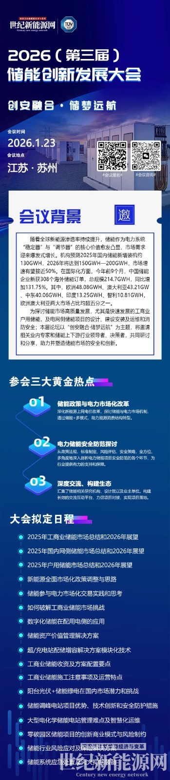 在此背景下,以“創(chuàng)安融合·儲(chǔ)夢(mèng)遠(yuǎn)航”為主題的2026(第三屆)儲(chǔ)能創(chuàng)新發(fā)展大會(huì),將于2026年1月23日召開。會(huì)議將聚焦電力儲(chǔ)能安全防范探討,從政策法規(guī)、標(biāo)準(zhǔn)制定、風(fēng)險(xiǎn)評(píng)估、安全策略等全方位、多角度地深入剖析電力儲(chǔ)能項(xiàng)目安全防范的各個(gè)環(huán)節(jié),致力于推動(dòng)行業(yè)建立更健全的安全體系,護(hù)航儲(chǔ)能產(chǎn)業(yè)行穩(wěn)致遠(yuǎn)。