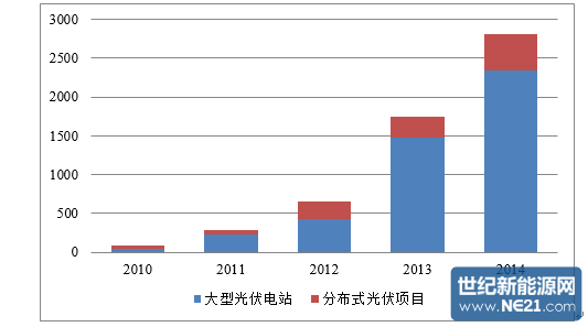 可以看出,大型地面光伏電站目前仍然是主流。然而,我們也不能忽視, 2014年分布式的年新增裝機量是2010年的10.6倍!前文提到,我們之所以相信光伏未來會比風電更具發展前景,最大的優勢在于光伏受到的制約最小。當然,是分布式光伏!