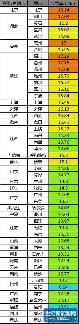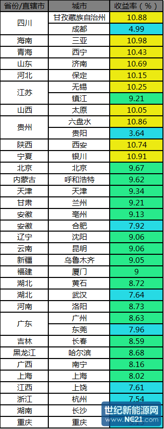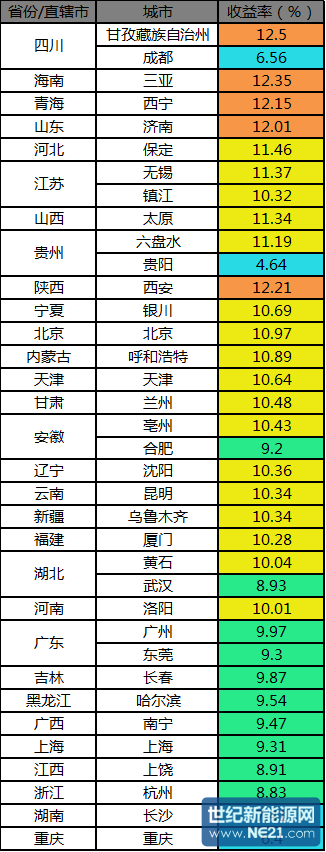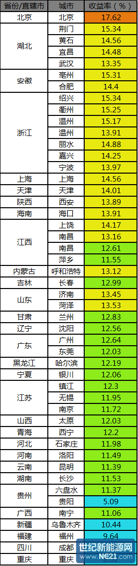 那么,如果按70%的自發自用比例來測算各地收益率,會有什么變化呢?真相又來了!