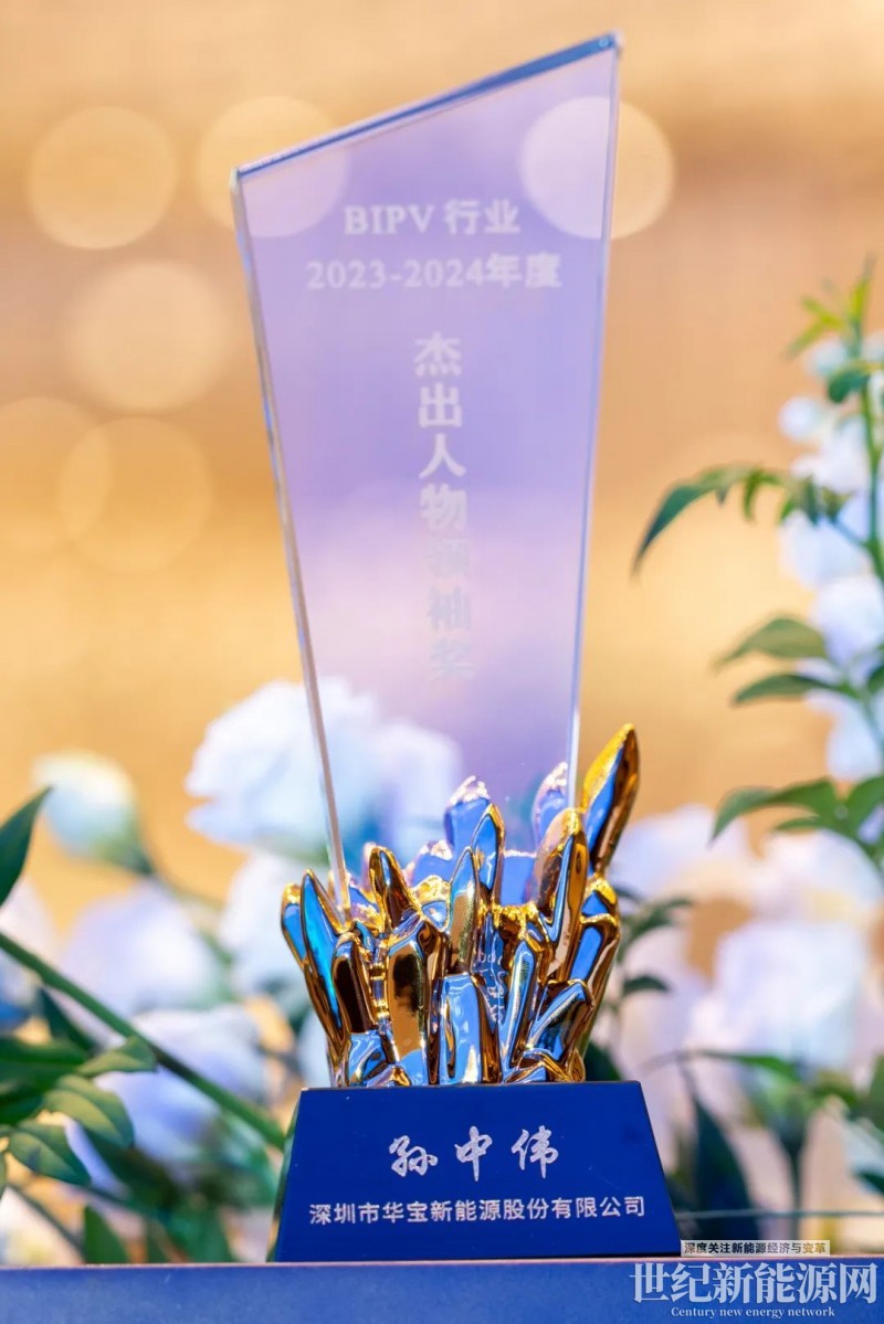 華寶新能董事長孫中偉先生因其在BIPV領域的深刻洞察和杰出貢獻,榮獲2023-2024年度BIPV行業杰出人物領袖獎。