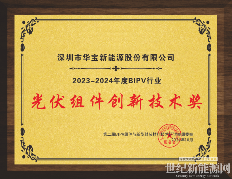 圖:華寶新能獲得“2023-2024年度BIPV光伏組件創新技術獎”