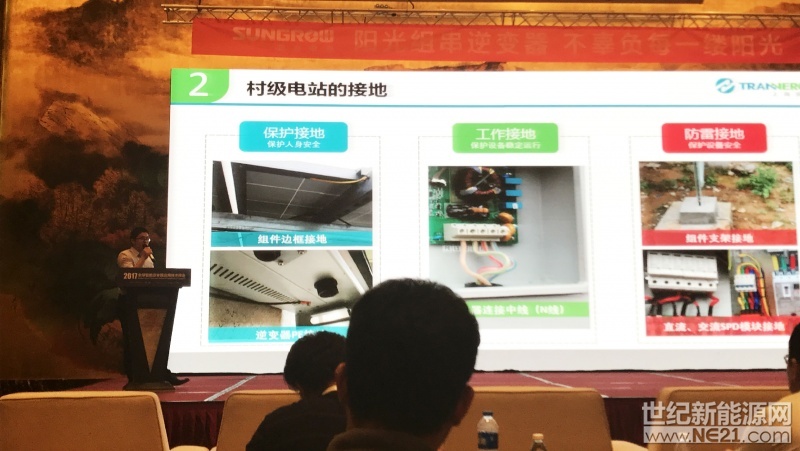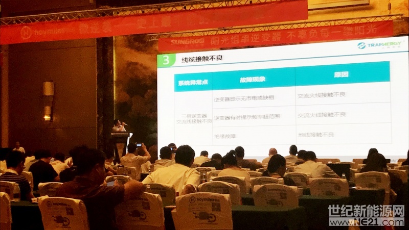 湯經理不僅為嘉賓講解分布式政策問題,針對光伏行業的過快發展,從項目選址,方案設計,設備選型,安裝調試各個環節都進行了一一概述,并且從問題入手,深入剖析了很多低效、不可靠、甚至不安全的光伏系統和逆變器常見問題。湯經理通過實際案例對這些問題做了深入分析和專業解答,努力讓客戶用到高效、可靠、安全、利民惠民的光伏電站。