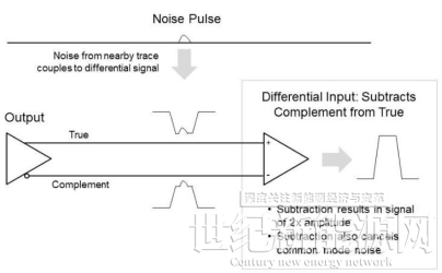 所有電路中都需要一個完整的電流回路才能正常運作,對于單端電路而言,信號通過單根導線傳送到接收器,信號是在一根導線傳輸的與地之間的電平差,這種方案的不足之處在于,如果接地平面上存在噪音,就會影響到鏈接到的所有電路。而差分信號使用兩根導線或PCB走線。第二根導線或走線提供了電流的回路,這跟導線上的信號(即互補信號)相對于真實信號有180度的相位差,與單端信號傳輸不同,差分信號的回路是專門為該電路而設的。