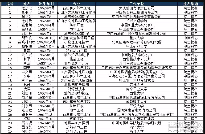 4月30日,中國工程院網站公布了2019年工程院院士增選有效候選人名單。經中國工程院主席團審定,最終確定的有效候選人共531位。其中,能源與礦業工程學部共69人入選!