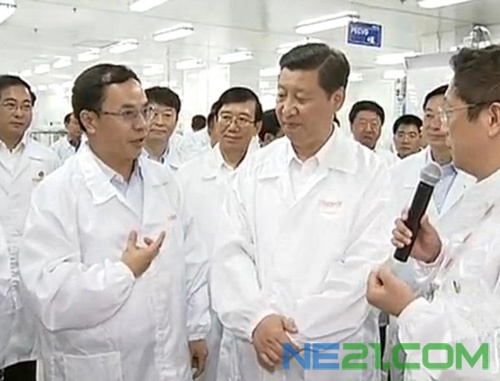 8月22日,習近平在成都漢能新能源產業園考察,聽取李河君會長企業情況匯報