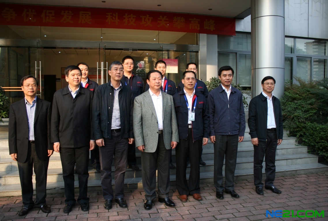 由左至右:韓春林(成都市市長助理、高新區管委會主任)、黃建發(成都市委常委、秘書長)、敬剛(成都市委常委、高新區黨工委書記)、黃新初(四川省委常委、成都市委書記)、王有治(硅寶科技總經理)、劉超(成都市委常委、統戰部部長)、何禮(成都市經濟和信息化委員會主任)