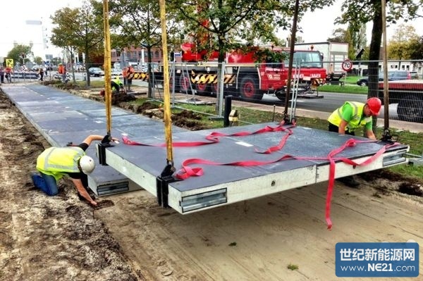 其實,這項計劃早在 2011 年年初便開始策劃研發,原計劃將于 2012 年完成,但由于種種原因在近日才正式開始動工鋪設。這條太陽能自行車道由一塊塊表層覆蓋太陽能面板的混凝土水泥塊拼接而成,覆蓋在表面的晶狀太陽能電池面板僅 1 英寸(約 2.5 cm)厚,卻能承受一輛卡車的重量。盡管太陽能面板不能移動獲取最大的太陽光照射范圍,但這條 70 米長的車道能提供足夠三戶家庭的用電。