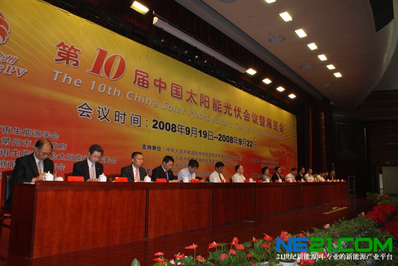 秋風送爽,萬商云集。2008年9月18日,做為2008中國常州科技經貿洽談會的重頭戲,第十屆中國太陽能光伏會議暨展覽會在江蘇常州舉行新聞發布會。會議邀請了常州市副市長韓九云、中國可再生能源學會副理事長、光伏專業委員會主任趙玉文出席會議并致歡迎詞,光伏會議承辦方天合光能公司董事長高紀凡出席會議,并回答記者的提問。