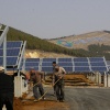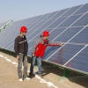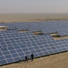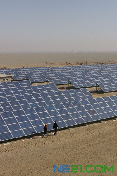 國(guó)投電力在2009年12月30日先期并網(wǎng)發(fā)電的1兆瓦光伏電站,全部并網(wǎng)后占地面積將是眼前的10倍大,但盡管如此,在一望無(wú)際的大漠中也顯得微不足道。