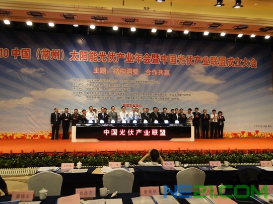 為促進我國光伏產業的持續健康發展,推動建設完整的產業鏈和成熟的市場,提升行業的整體競爭力,我國 光伏產業內部加強合作與交流的呼聲日益強烈。2010年5月17日,在工業和信息化部、國家發展改革委的指導下,國內22家光伏企事業單位作為發起單位,在江蘇常州 正式宣布成立中國光伏產業聯盟并舉行了成立大會。工業和信息化部電子信息司、國家發展改革委高技術司、江蘇省經濟和信息化委員會、江蘇省常州市等部委及地 方有關領導出席大會并致辭表示祝賀。