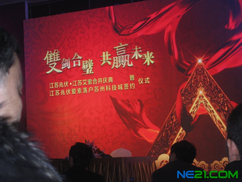 2012年1月5日,江蘇艾索新能源有限公司與江蘇兆伏新能源有限公司今天舉行“雙劍合璧,共贏未來”慶典發布會。