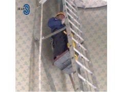 折疊式踏板安裝在免爬器底部,方便操作人員因意外情況向下安全撤離。撤離時,可先向上折疊其中一塊踏板,然后順著爬梯向下安全撤離